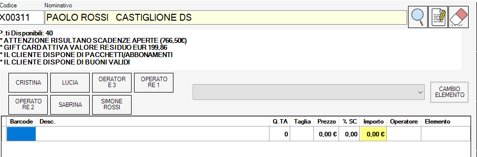 ) del cliente selezionato. La scheda riguarda sia i saloni di parrucchieri che i centri estetici.