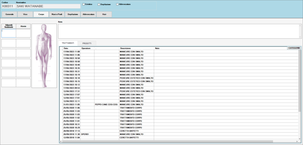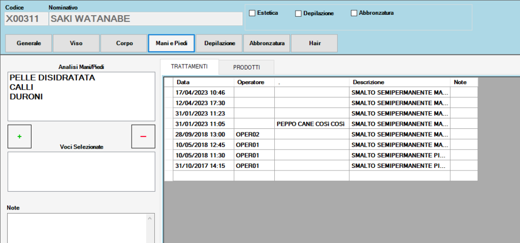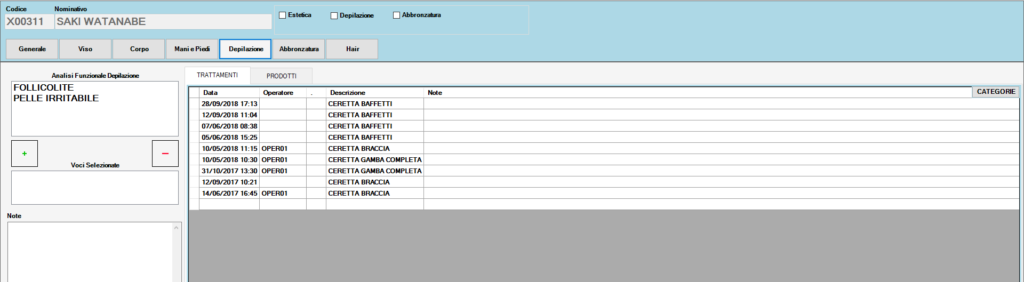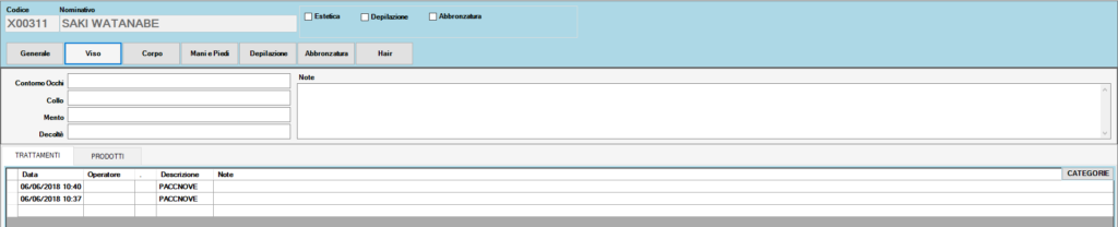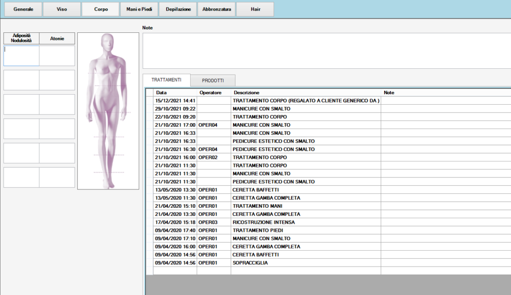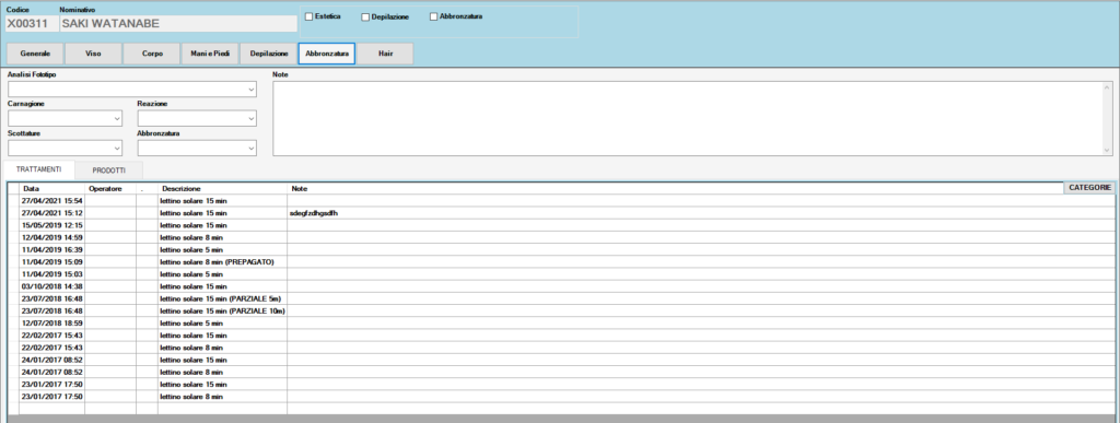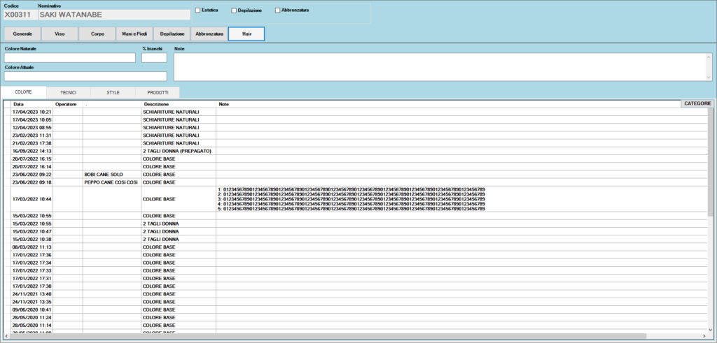 ) del cliente selezionato. La scheda riguarda sia i saloni di parrucchieri che i centri estetici.