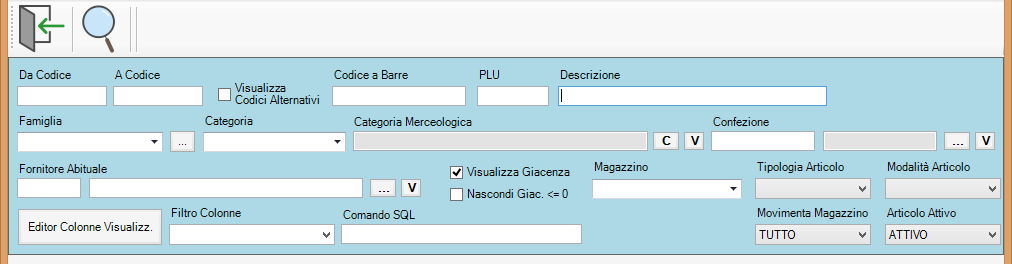 Nella ricerca è anche possibile visualizzare la giacenza delle merci andando a spuntare “visualizza giacenze”