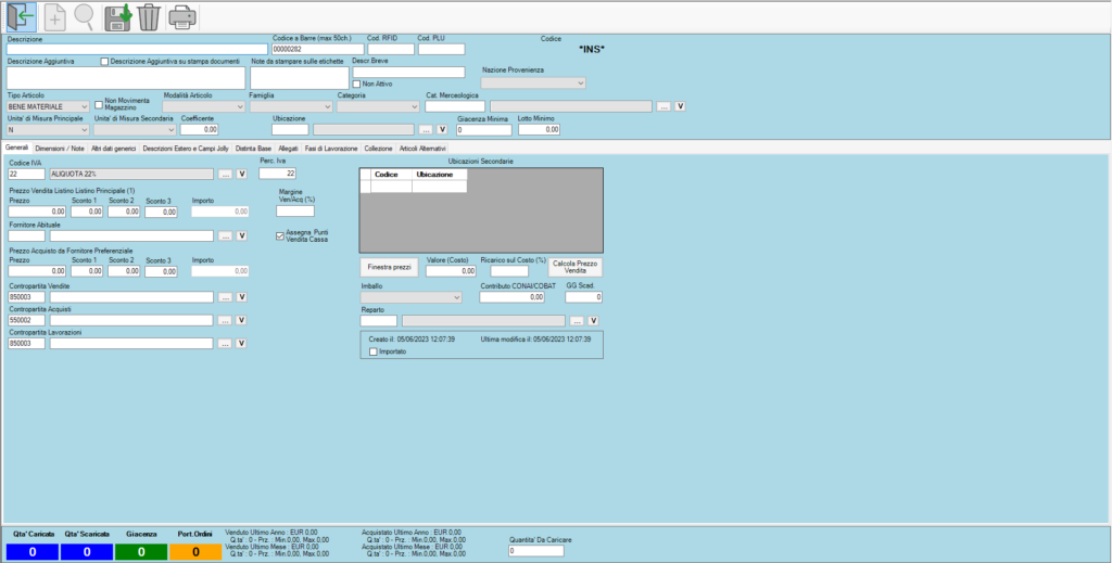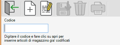 Quando si accederà all’area anagrafica articoli si potrà creare una nuova scheda cliccando “Nuovo” (