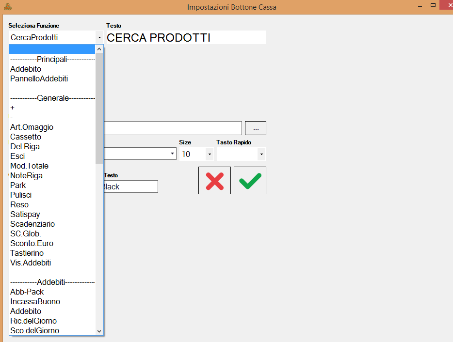 Premendo “Elimina” si procederà ad eliminare il bottone dalla cassa.