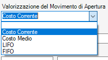 ed impostare il tipo di valorizzazione da utilizzare per il movimento di riapertura