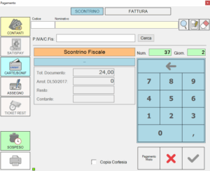 questo pulsante ha una funzione simile al modifica totale, solo che in questo caso invece che indicare l’importo che si vuole far pagare al cliente si dovrà indicare lo sconto in euro(€) che gli si vuole offrire;