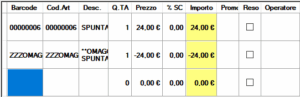 questo tasto permette di stornare il prezzo di una riga selezionata e quindi dare quel dato articolo in omaggio;