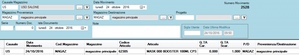 questo pulsante è utile quando si utilizza un prodotto all’interno del salone stesso, con questo tasto si genererà un movimento di magazzino per uso salone,