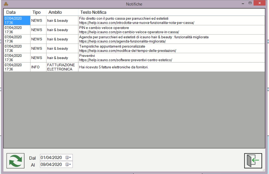 – Le NEWS cioè le modifiche effettuate al programma che vi reindirizzeranno tramite un link al nostro manuale di Icauno.