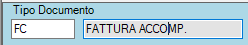 Nel “Tipo Documento” inserire la causale, la più comune per le fatture accompagnatorie è “FC” per gestire oltre al movimento di magazzino anche lo scadenzario e la contabilità,