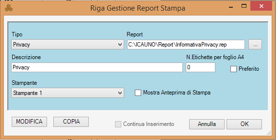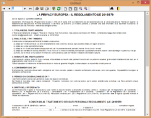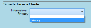 Nella sezione Scheda Tecnica Cliente –> Informativa Privacy aggiungere il modulo di stampa appena inserito tramite il menù a tendina.