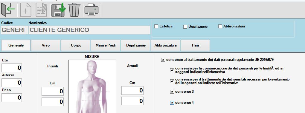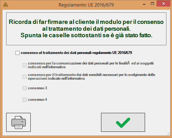 Flaggare i dati per acconsentire i consensi. Dopodiché premere l’icona