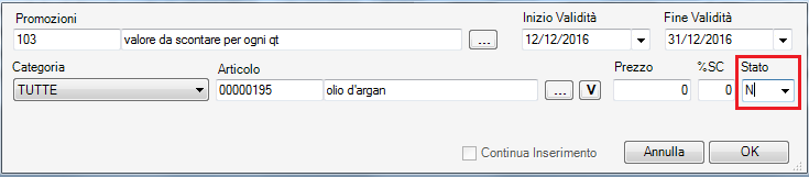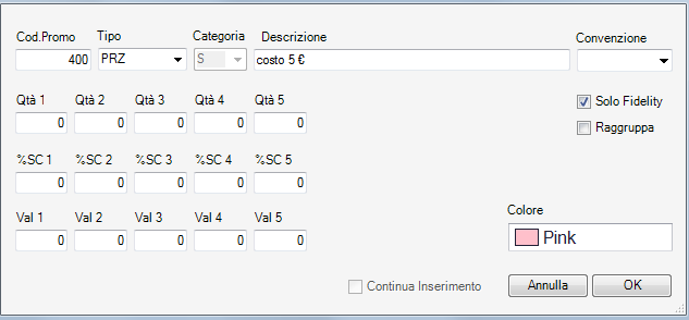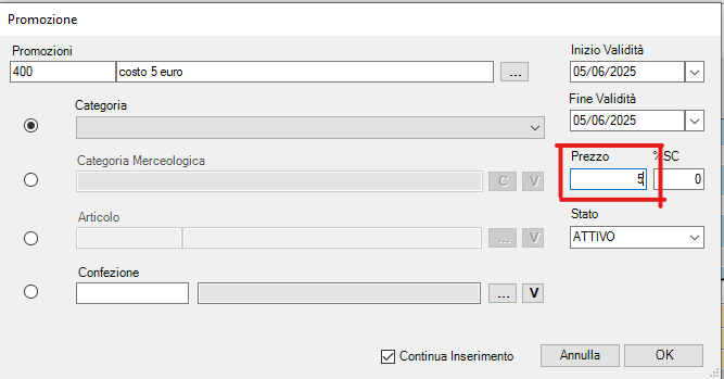 ATTENZIONE: la promo 400, essendo una promo di tipo PRZ, all’interno del campo prezzo ha inserito il valore che vedremo poi all’interno del registratore di cassa