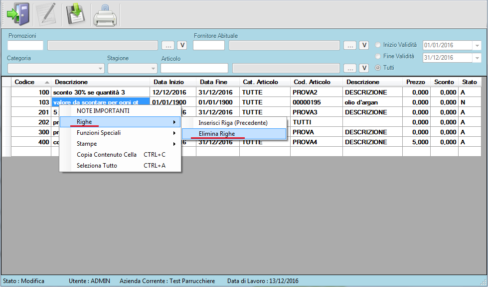 al suo interno andremo a inserire le promo che desideriamo creare, quindi cliccando due volte col tasto sinistro del mouse all’interno di una cella verrà caricata una nuova scheda che ci permetterà di modificare i dati in modo da creare una nuova promozione come più ci aggrada